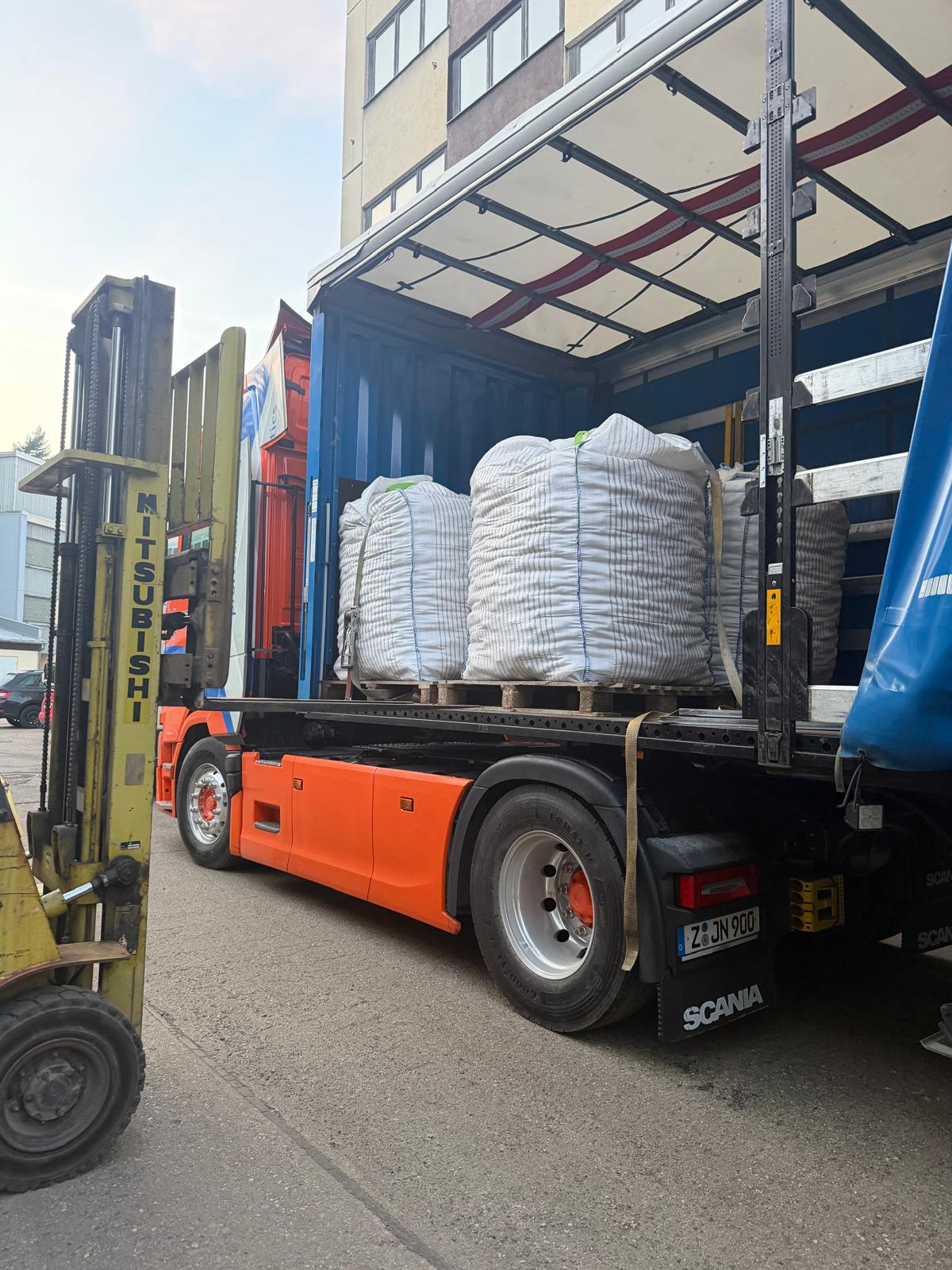Auch bei uns wurde eine Tonne Kartoffeln geliefert.